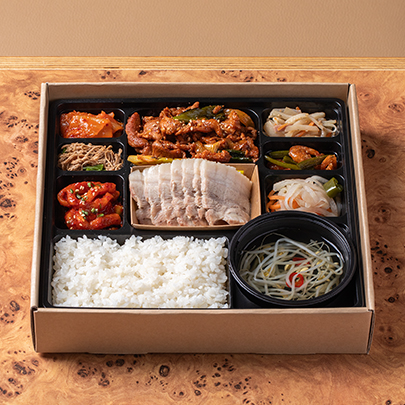 보쌈+광릉식불고기도시락담백하고 부드러운 보쌈에 광릉식 불고기를 같이 즐길 수 있는 도시락 메뉴입니다.